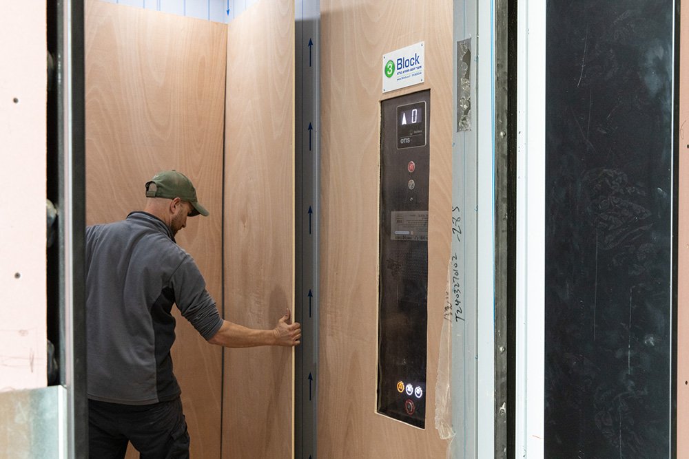 חליפת ההגנה למעלית מעץ מבית 3Block נועדה להציע פתרון חזק וחסכוני להגנה מקסימלית בתקופות מיגון ארוכות, לרבות בנייה, שיפוצים ושלב אכלוס הבניין.