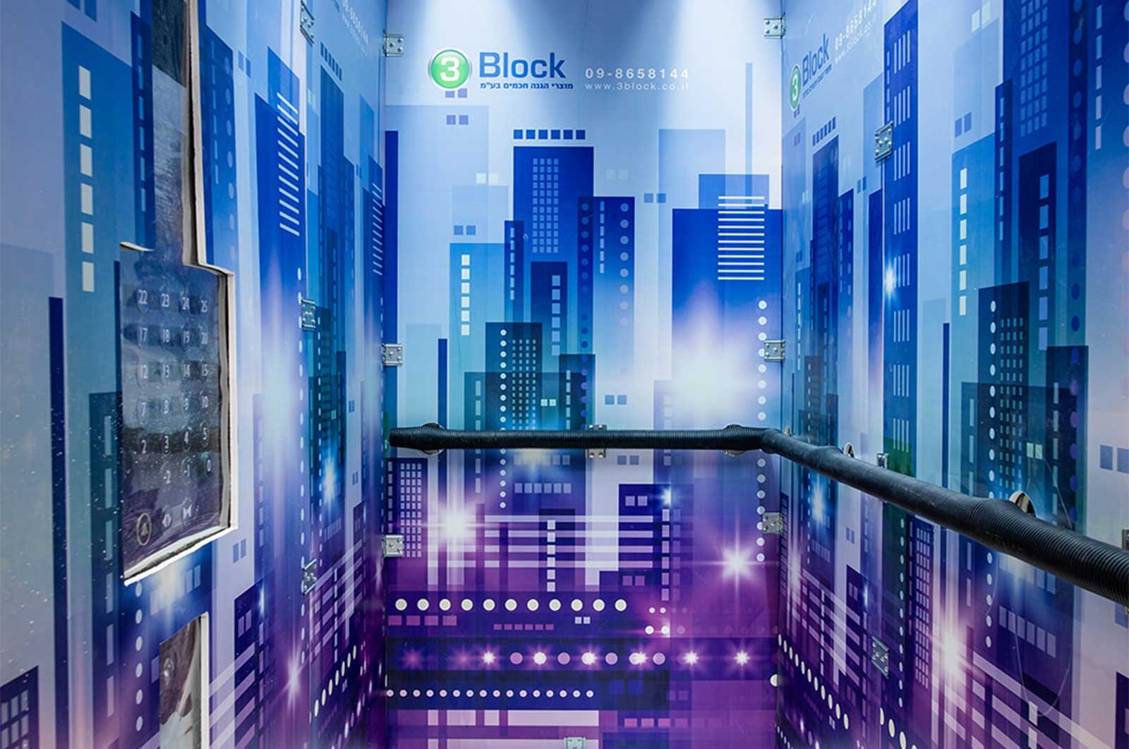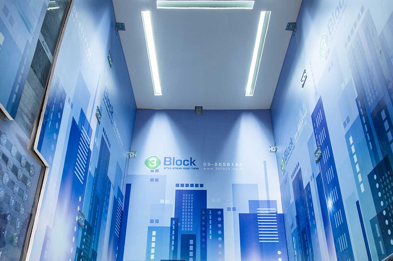 Switchboard covers and floor monitors are made of 0.6 mm transparent PVC, which ensures visibility and easy access to the elevator’s control and monitoring systems.
